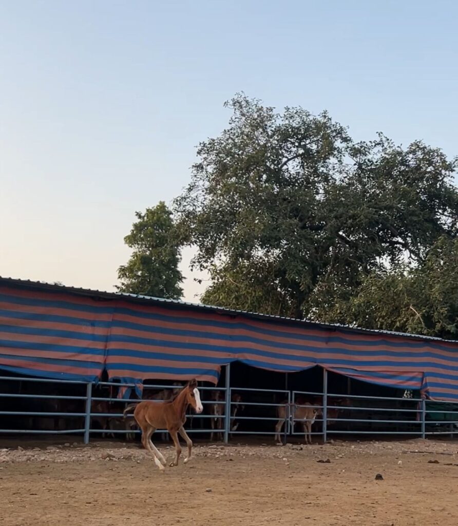 Born to sire Fateh and dam Maitri, this mariwadi young horse calf is just 2 months old.