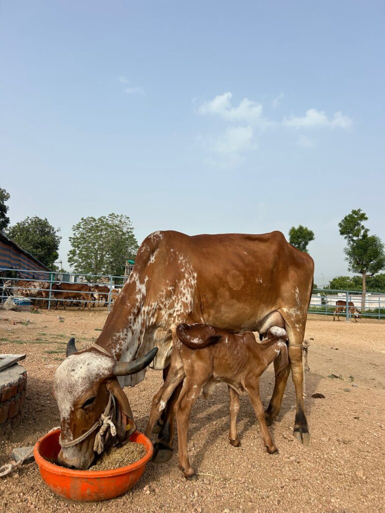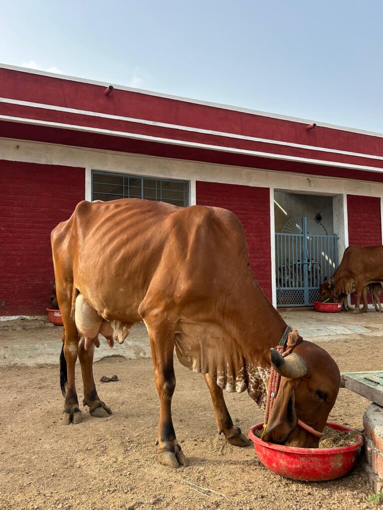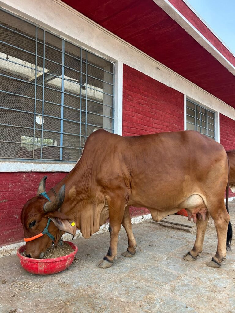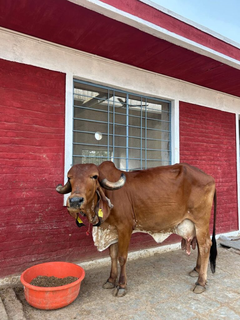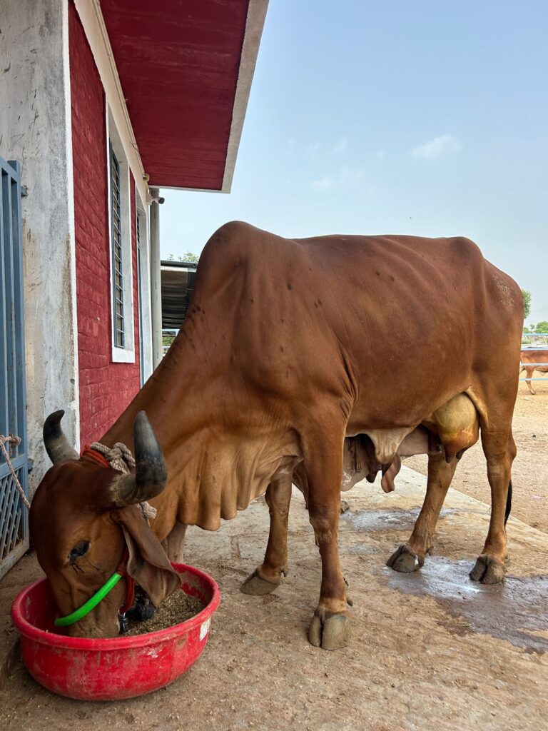 At 10 years old, Saraswati is a seasoned Gir cow with a daily yield of 11 liters of milk. She’s calm, resilient, and deeply bonded with our farm team.