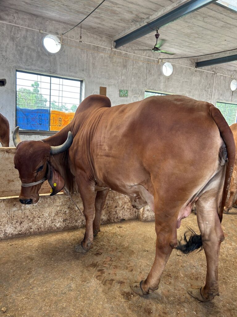 Basanti is a 5-year-old Gir cow with a graceful presence and balanced temperament.